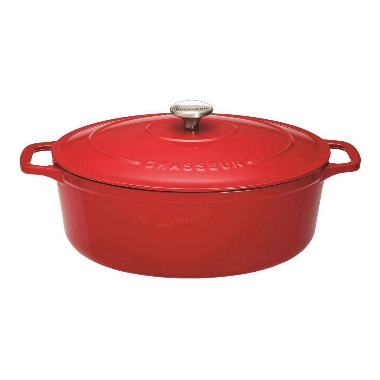 Cratita Chasseur ovala cu capac rosu 27x20 cm