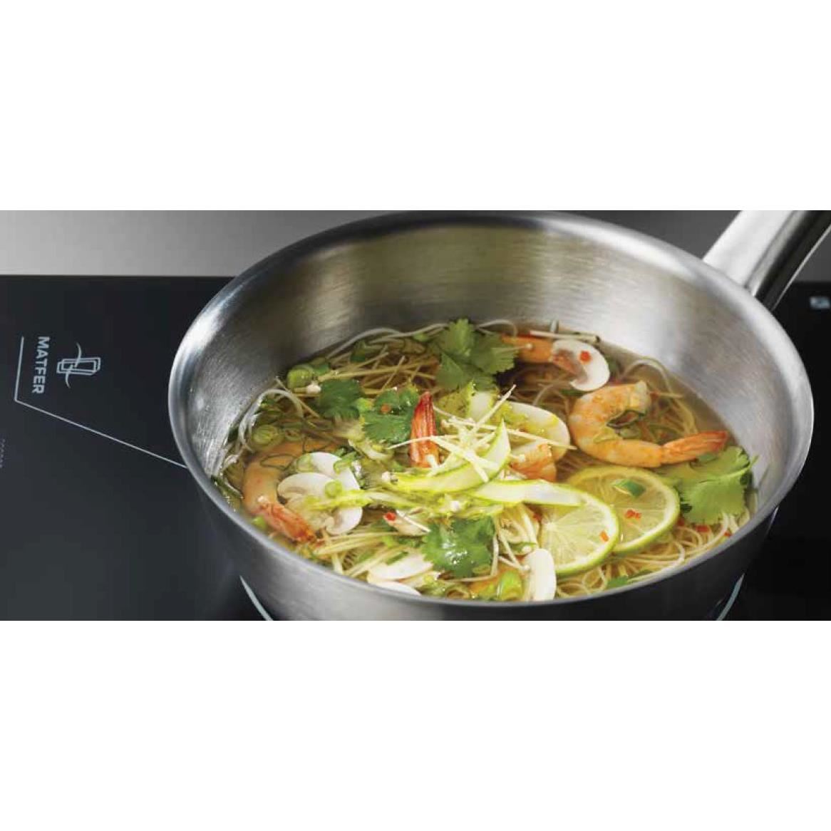 Realizata din otel inoxidabil foarte gros cu întărituri superioare și inferioare lustruite în oglindă, special compatibil cu toate tipurile de plita, inclusiv cele cu inducție