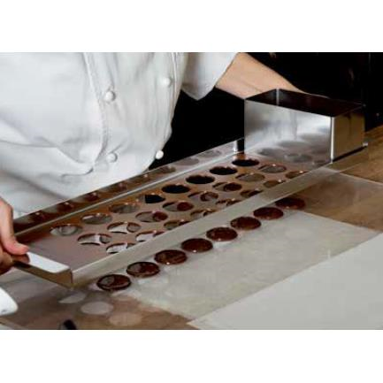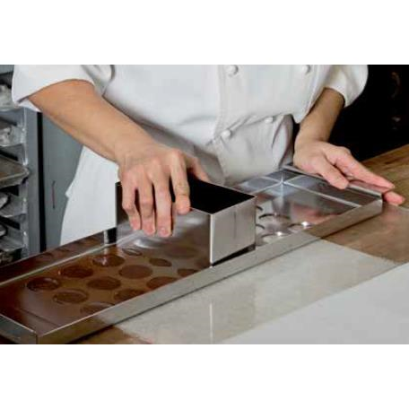 + Pentru o utilizare optima, introduceti kitul in cuptor la 30 / 35 grade C pentru a evita solidificarea ciocolatei in contact cu inoxul.